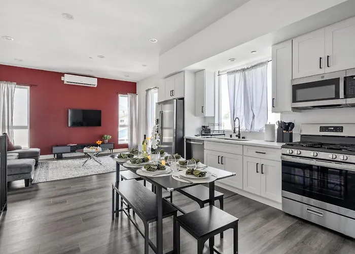 An equipped kitchen has an electric kettle, a fridge, and kitchenware to offer. Central 4Bed Bright Parking Dtla Usc Expopark villa is just near Alex Fish Market, where guests can enjoy various meals. Central 4Bed Bright Parking Dtla Usc Expopark villa is also situated fairly close to Martin Luther King Junior & Normandie bus stop.